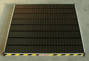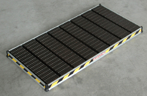 The combined system can be used to make floorings for exhibitions in which the ramp and parking areas for the machine require load-bearing modules.